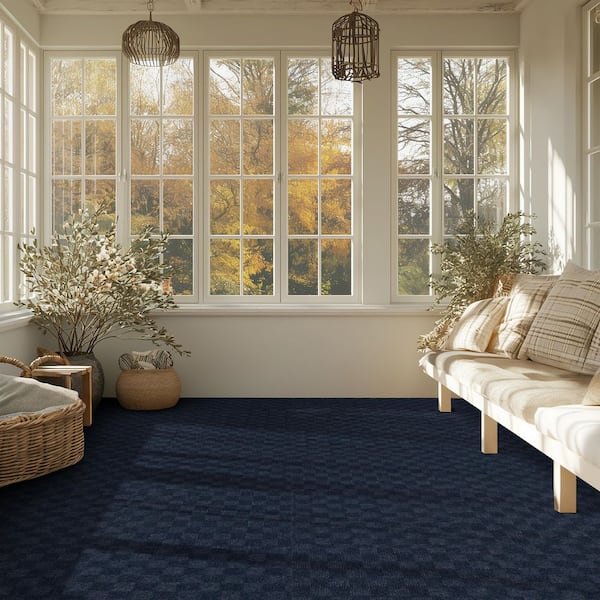 Cascade - Denim - Blue Commercial/Residential 24 x 24 in. Peel and Stick Carpet Tile Square (60 sq. ft.)