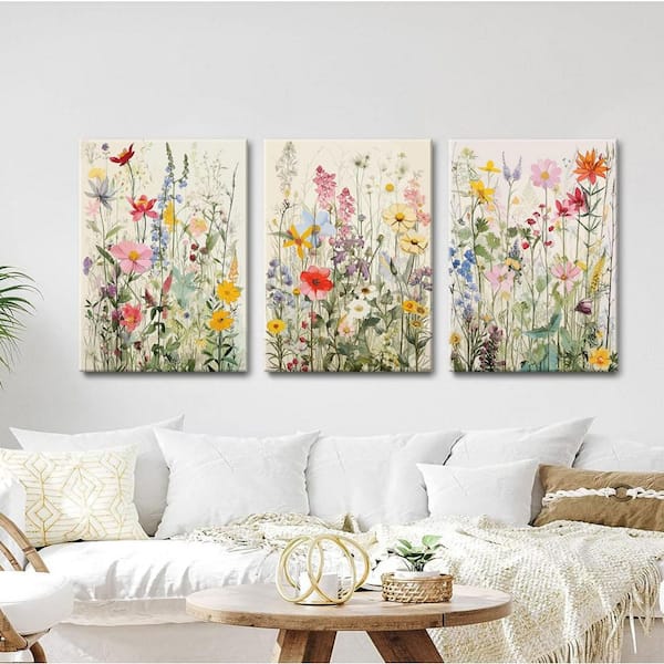 Framed Colorful Wildflower Canvas Wall Art Set of 3, 16 in. x 12 in. x 0.2 in.