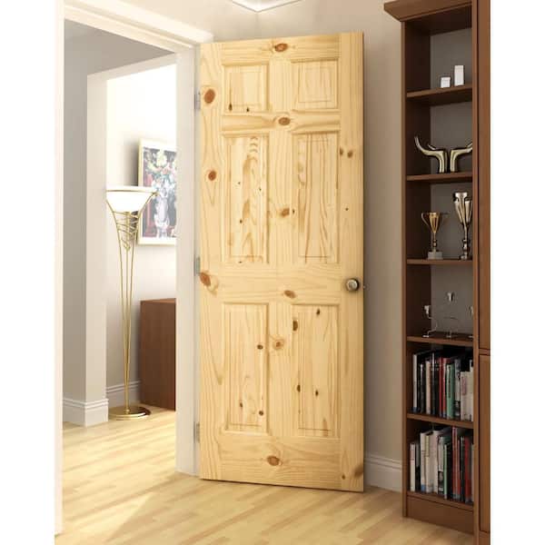 30 in. x 80 in. Colonial 6-Panel Solid Wood Knotty Pine Wood Interior Door Slab