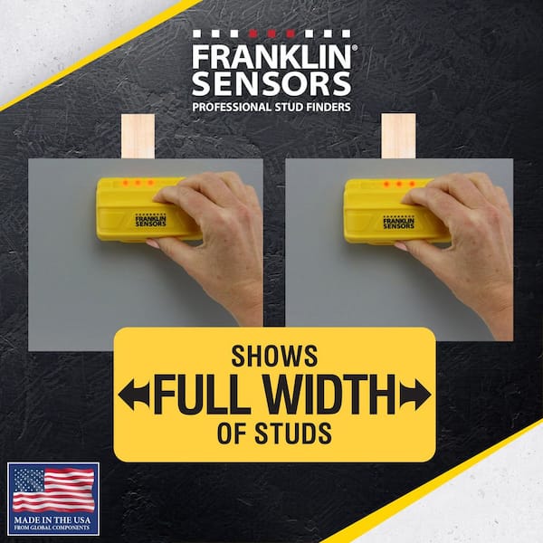 • Stud Finder shows the FULL WIDTH of Studs with a wide LED display