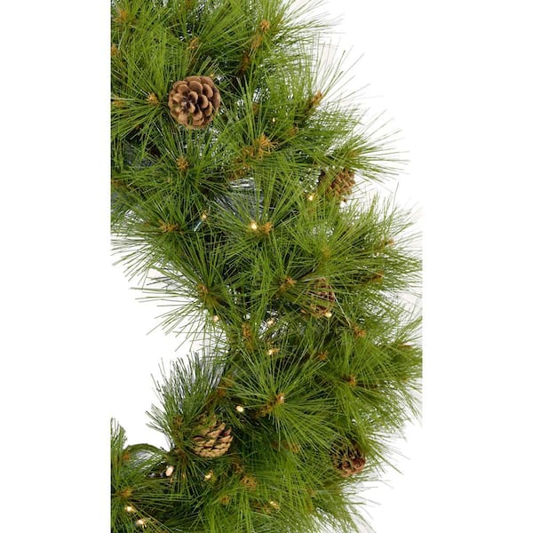 48 in. Eastern Pine Artificial Holiday Wreath with Clear Battery-Operated LED String Lights