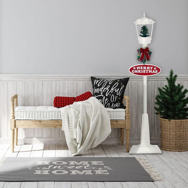 71 in. White Christmas Square Street Lamp with Christmas Tree and Music