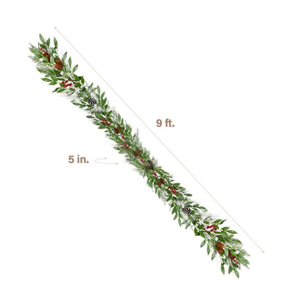 9 ft. Mixed Leaf Decorative Artificial Garland with Pinecones and Red Berries