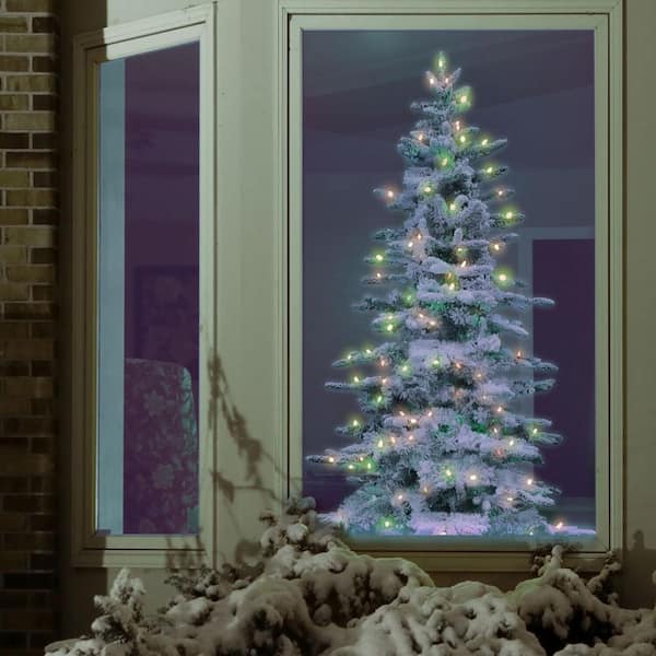 9 ft. Pine Valley Flocked Artificial Christmas Tree, w/Multi-Color LED Lights, Remote Control Lights, Easy to Connect