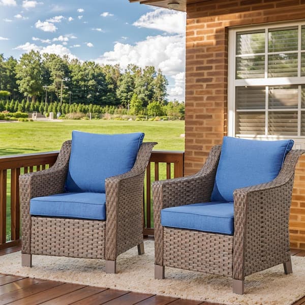 Frazee Brown Patio Club Chair Set 2-Piece Outdoor Lounge Chair with Thick CushionGuard Blue Cushions