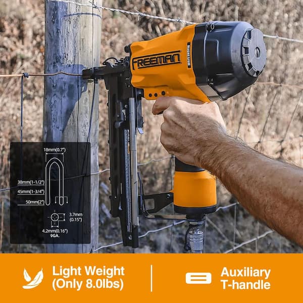2nd Generation Pneumatic 9-Gauge 2 in. Fencing Stapler with Case, T-Handle, Belt Hook, and 1/4 in. NPT Air Connector