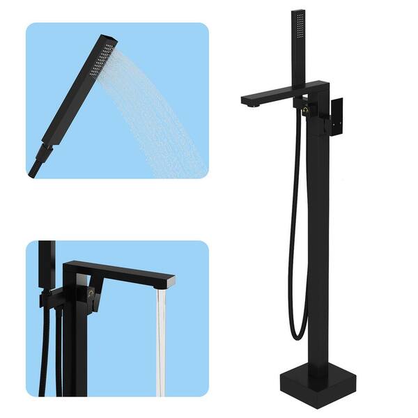 Freestanding Bathtub Faucet, Single Handle Bathroom Faucets with Single Shower Hand in Black, 6 GPM