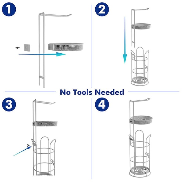 Freestanding No Post Toilet Paper Holder Roll Storage Rack with Dispenser and Raised Base in Gray