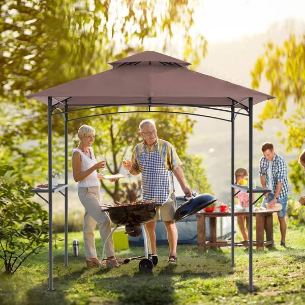 8 ft. x 5 ft. Khaki Patio Double-Tier Soft Top Barbecue Grill Gazebo Tent with Steel Frame and Bar Counters