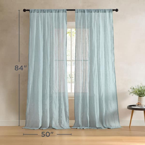 Charter Aqua Faux Linen Solid 50 in. W x 84 in. L Easy Care Rod Pocket Indoor Sheer Curtain (Set of 2 Panels)