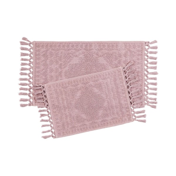 Nellore Dusty Red Fringe Solid Color Cotton Rectangle 2-Piece Bath Rug Set