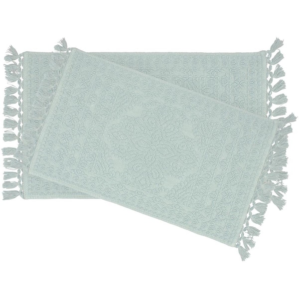 Nellore Fringe Cotton Light Blue 17 x 24 in./20 x 34 in. 2-Piece Bath Rug Set