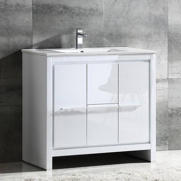 Allier 36 in. Bath Vanity in White with Ceramic Vanity Top in White with White Basin