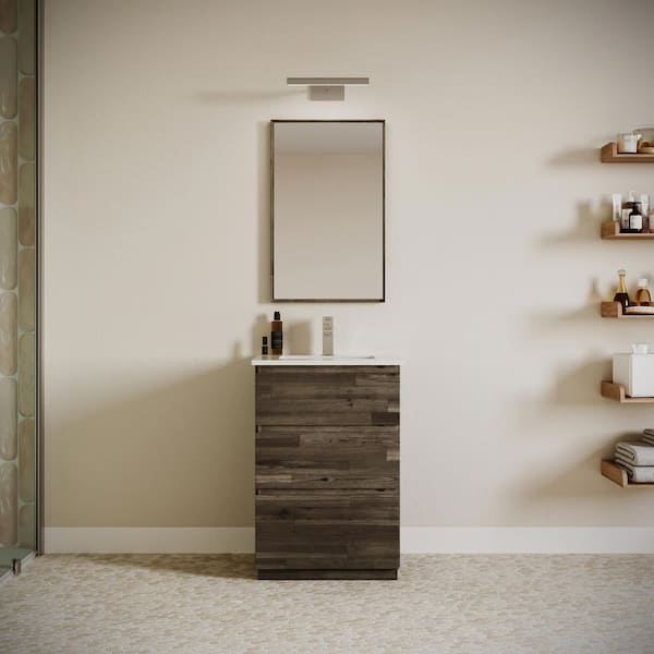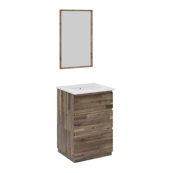 Formosa 24 in. Single Sink Freestanding Acacia Bath Vanity with White Quartz Top, Undermount Ceramic Sink and Mirror