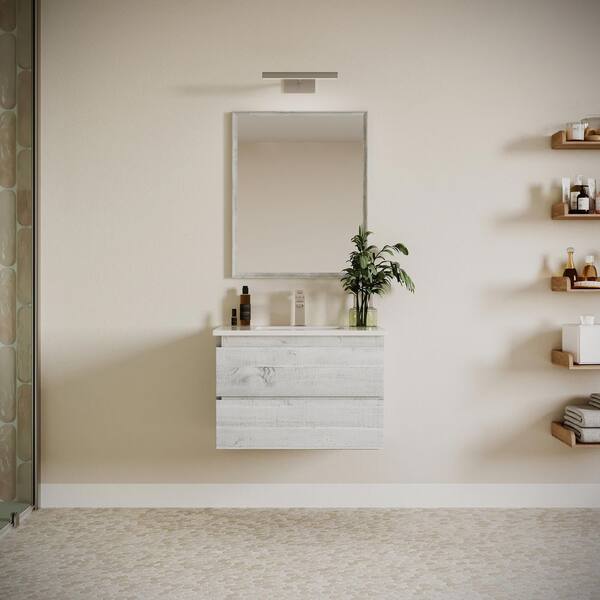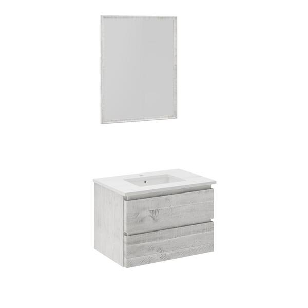 Formosa 30 in. Single Sink Wall Mount Rustic White Bath Vanity with White Quartz Top, Undermount Ceramic Sink and Mirror