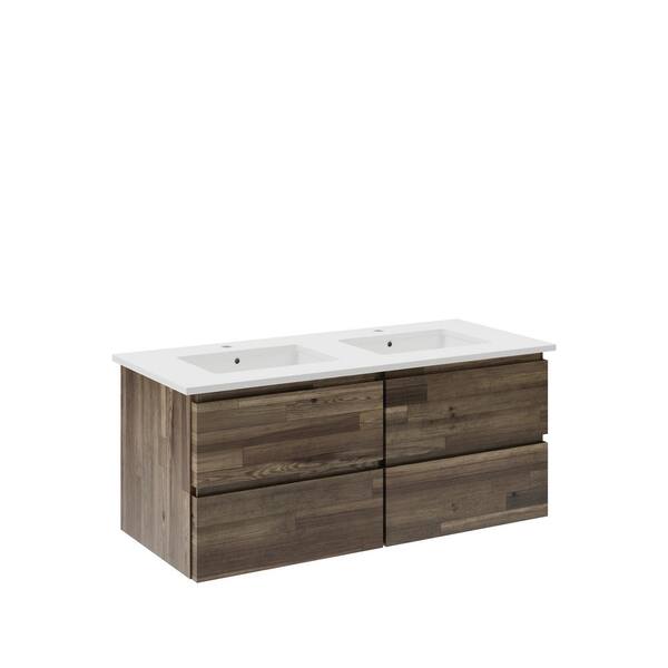 Formosa 48 in. Double Sink Wall Mount Floating Acacia Bath Vanity with White Quartz Top and Undermount Ceramic Sink