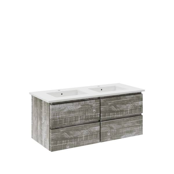 Formosa 48 in. Double Sink Wall Mount Floating Sage Gray Bath Vanity with White Quartz Top and Undermount Ceramic Sink