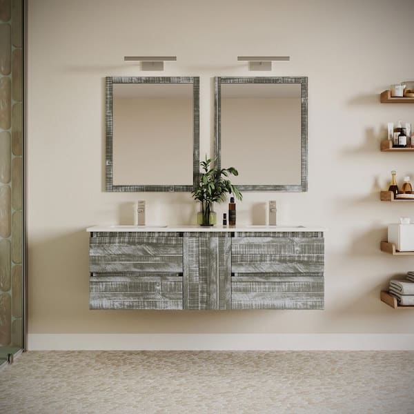 Formosa 58 in. Wall Mount Floating Double Bath Vanity Cabinet without Top in Sage Gray