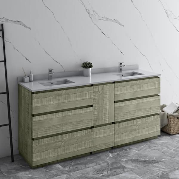 Formosa 72 in. Double Sink Freestanding Sage Gray Bath Vanity with White Quartz Top and Undermount Ceramic Sink