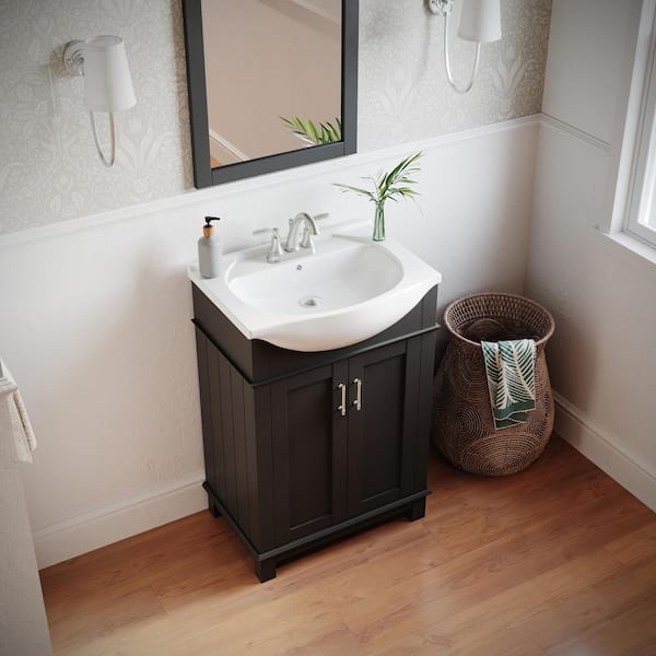 Hartford 24 in. Single Sink Transitional Black Bath Vanity with White Ceramic Top and Integrated Sink