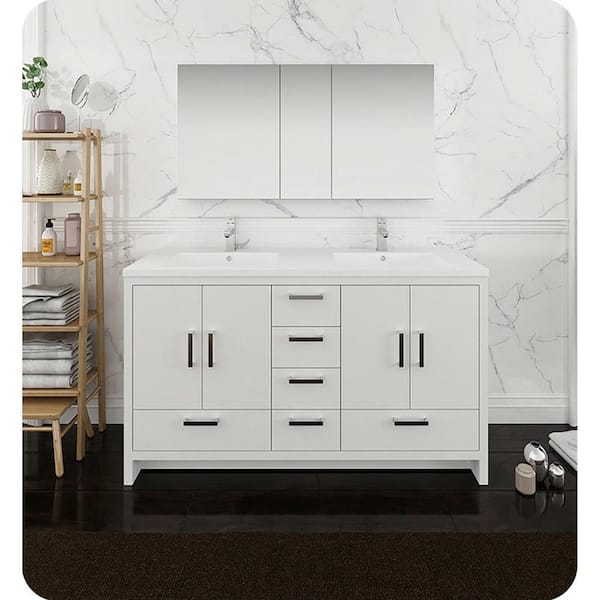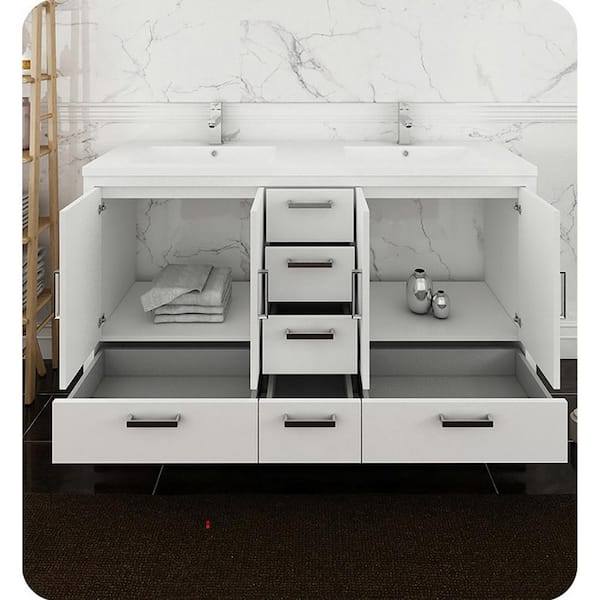 Imperia 60 in. Modern Double Bath Vanity Cabinet Only in Glossy White