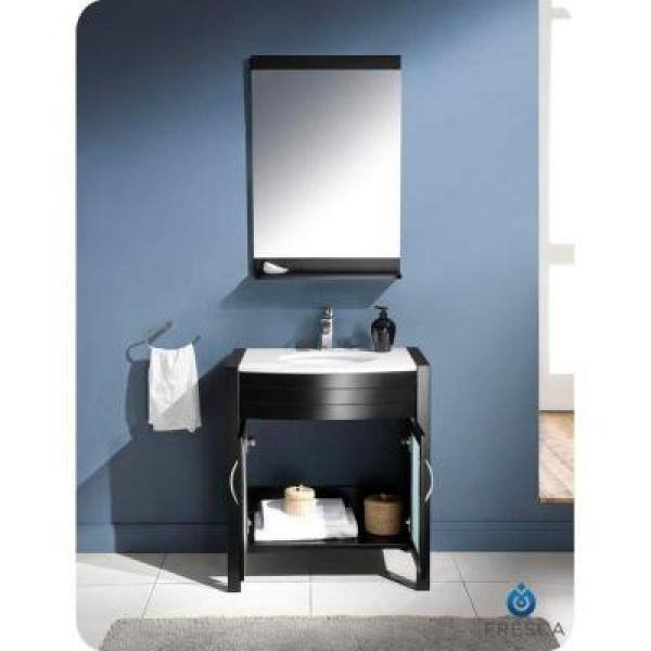 Infinito 30 in. Vanity in Espresso with Glass Stone Vanity Top in White and Mirror-DISCONTINUED