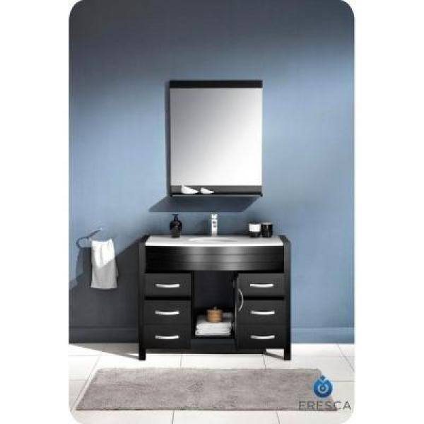 Infinito 44 in. Vanity in Espresso with Glass Stone Vanity Top in White and Mirror-DISCONTINUED