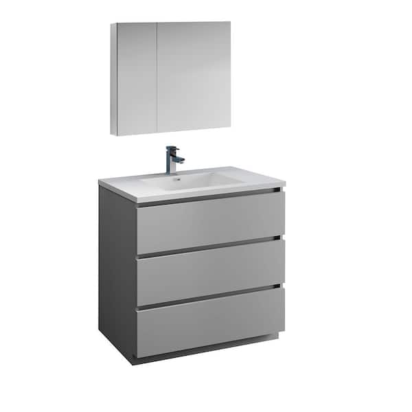 Lazzaro 36 in. Modern Bathroom Vanity in Gray with Vanity Top in White with White Basin and Medicine Cabinet