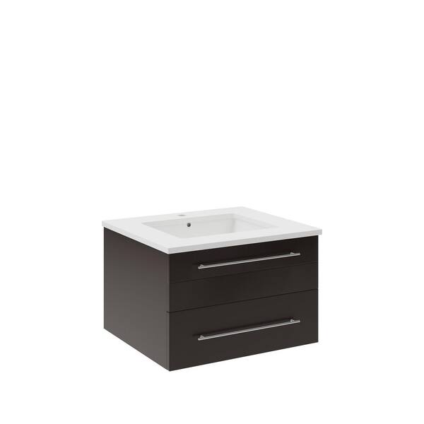 Lucera 24 in. Single Sink Wall Mount Floating Espresso Bath Vanity with White Quartz Top and Undermount Ceramic Sink