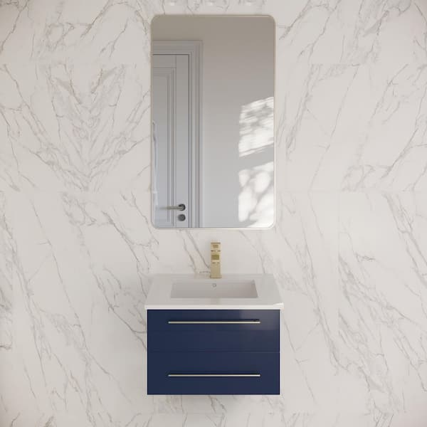 Lucera 24 in. Single Sink Wall Mount Floating Royal Blue Bath Vanity with White Quartz Top and Undermount Ceramic Sink