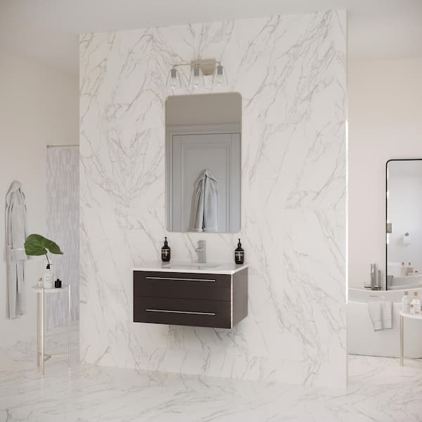 Lucera 30 in. Single Sink Wall Mount Floating Espresso Bath Vanity with White Quartz Top and Undermount Ceramic Sink
