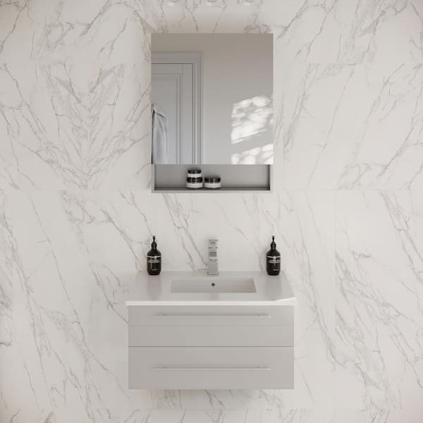 Lucera 30 in. Single Sink Wall Mount Gray Bath Vanity with White Quartz Top, Undermount Sink and Medicine Cabinet