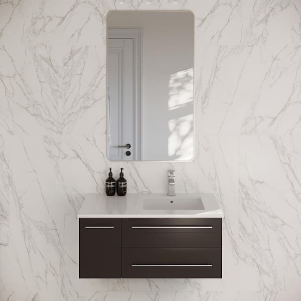Lucera 35 in. Wall Mount Single Bath Vanity Cabinet without Top in Espresso - Undermount Sink Compatible - Right Version