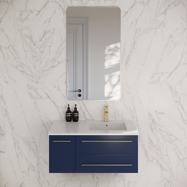 Lucera 35 in. Wall Mount Single Bath Vanity Cabinet without Top in Royal Blue - Undermount Right Sink Compatible