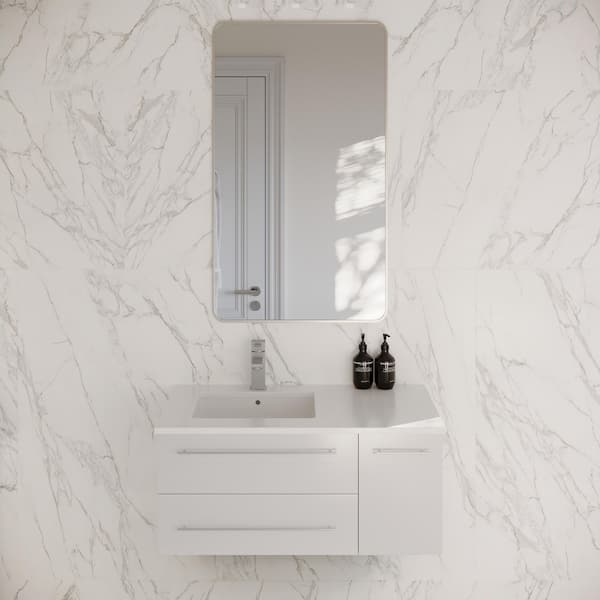 Lucera 35 in. Wall Mount Single Bath Vanity Cabinet without Top in White - Undermount Sink Compatible - Left Version