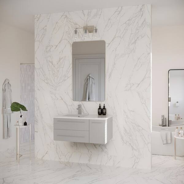 Lucera 36 in. Single Sink Wall Mount Gray Bath Vanity with White Quartz Top and Undermount Sink - Left Version