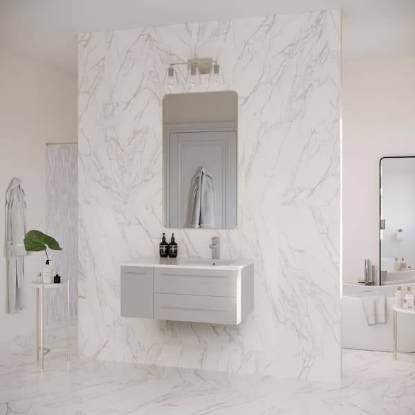 Lucera 36 in. Single Sink Wall Mount Gray Bath Vanity with White Quartz Top and Undermount Sink - Right Version