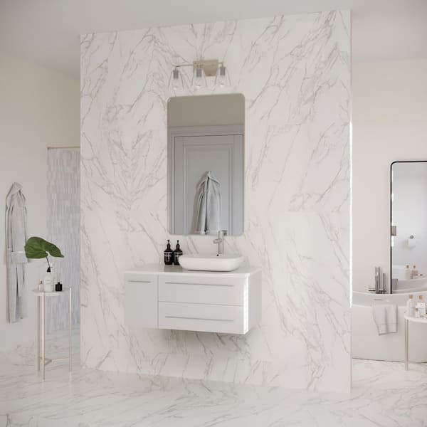 Lucera 36 in. Single Sink Wall Mount White Bath Vanity with White Quartz Top and Vessel Sink - Right Version