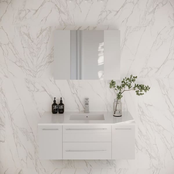 Lucera 42 in. Single Sink Wall Mount White Bath Vanity with White Quartz Top, Undermount Sink and Medicine Cabinet