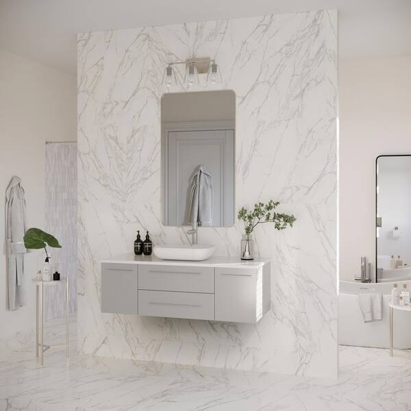 Lucera 48 in. Single Sink Wall Mount Floating Gray Bath Vanity with White Quartz Top and Vessel Ceramic Sink