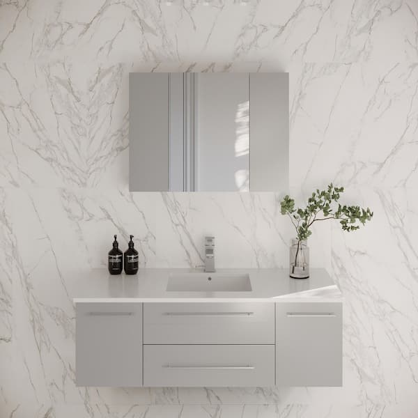 Lucera 48 in. Single Sink Wall Mount Gray Bath Vanity with White Quartz Top, Undermount Sink and Medicine Cabinet