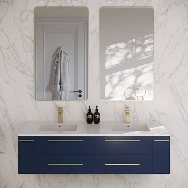 Lucera 60 in. Double Sink Wall Mount Floating Royal Blue Bath Vanity with White Quartz Top and Undermount Ceramic Sinks