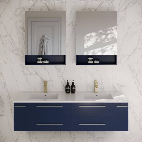 Lucera 60 in. Double Sink Wall Mount Royal Blue Bath Vanity with White Quartz Top, Undermount Sinks & Medicine Cabinets