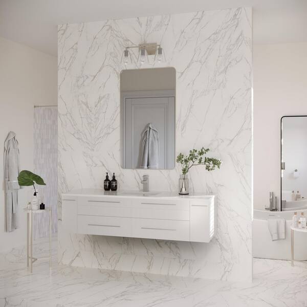 Lucera 60 in. Single Sink Wall Mount Floating White Bath Vanity with White Quartz Top and Undermount Ceramic Sink