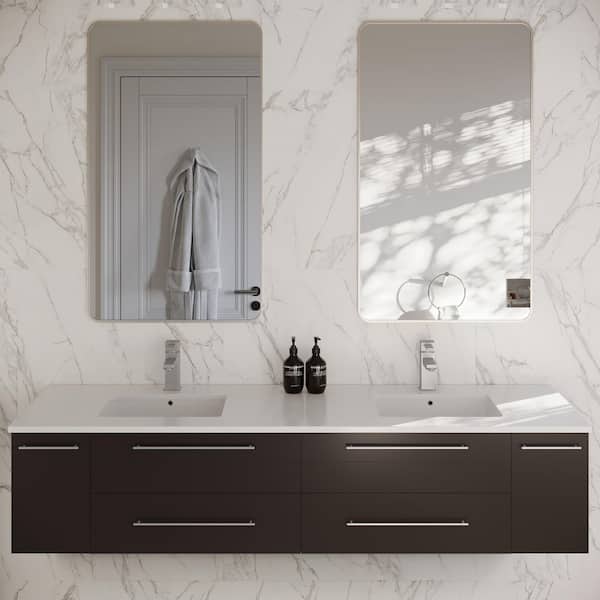 Lucera 72 in. Double Sink Wall Mount Floating Espresso Bath Vanity with White Quartz Top and Undermount Ceramic Sinks