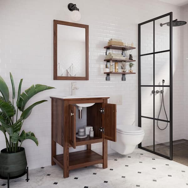 Manchester 24 in. Single Sink Shaker-Style Warm Walnut Bath Vanity with White Quartz Top and Integrated Sink