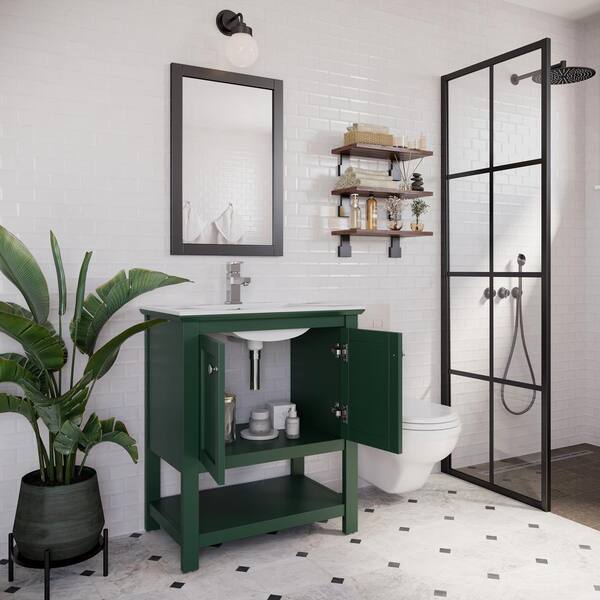 • Freestanding 30-inch Dark Green Vanity Set with Integrated Sink
