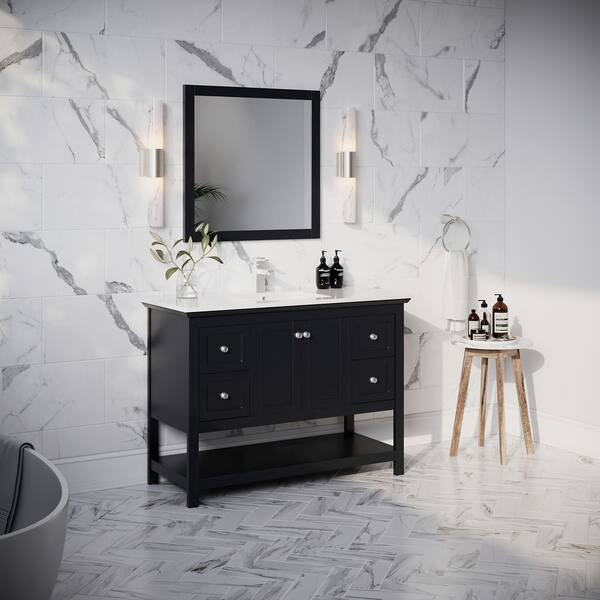 Manchester 48 in. Single Sink Shaker-Style Black Bath Vanity with White Quartz Top, Integrated Sink and Mirror