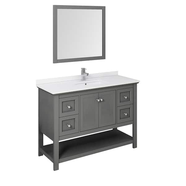 Manchester Regal 48 in. W Bathroom Vanity in Gray Wood with Quartz Stone Vanity Top in White with White Basin and Mirror