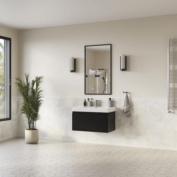 Mezzo 36 in. Modern Wall Hung Bath Vanity in Black with Vanity Top in White with White Basin